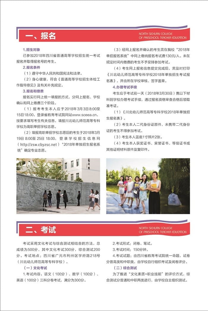 2018川北幼儿师范高等专科学校单招招生简章