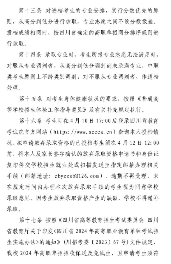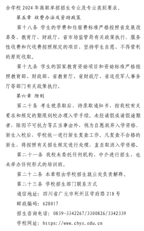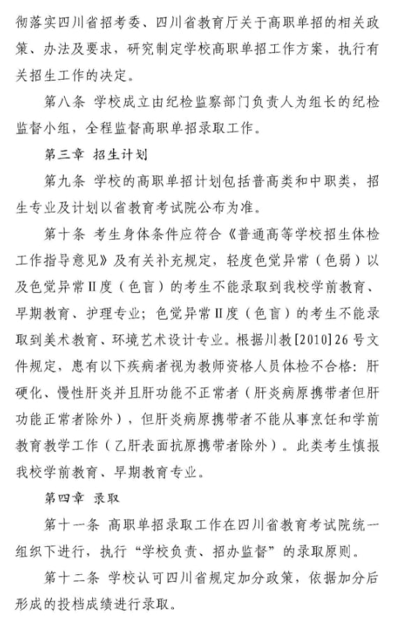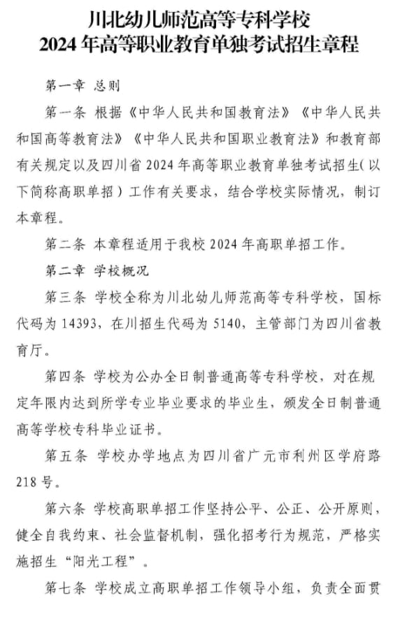 川北幼儿师范高等专科学校2024年高等职业教育单独考试招生章程